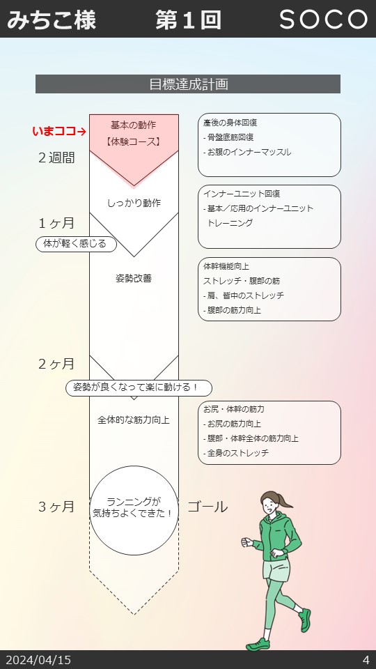 - 継続サポート:多忙な産後でも運動が続けられるようフォローアップ。