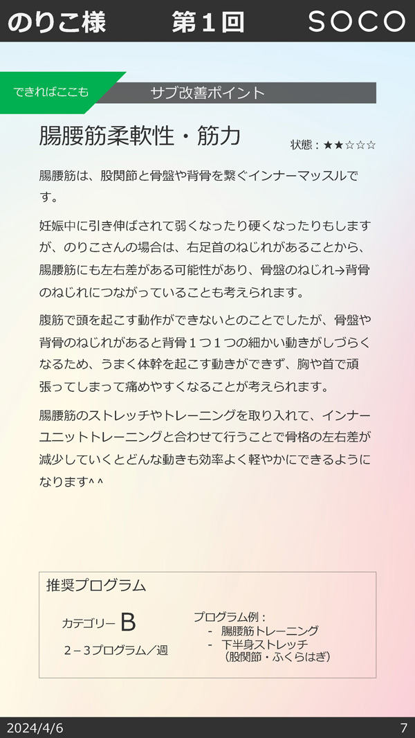 また、短時間で実施できる動画プログラムなどを個別にお送りさせて頂きます。
