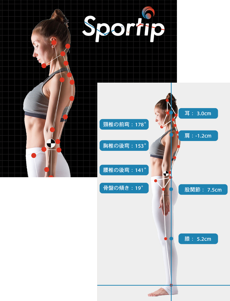 最新高精度分析AIのSportipと連携。あなたはスマートフォンで自分の撮影をするだけ。姿勢と動作の分析が簡単に正確に可視化され、そのデータを活用して、経験と知識豊富な理学療法士が分析。